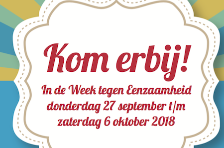 In de week van 27 september t/m 6 oktober staan allerlei Rijswijkse initiatieven centraal die ontmoetingen maken en contact stimuleren. De week wordt op vrijdag 5 en zaterdag 6 oktober afgesloten in het Oude Raadhuis met het gratis festival voor jong en oud met diverse activiteiten op het gebied van kunst, cultuur en welzijn. Alle inwoners van Rijswijk zijn welkom. Kijk op www.komerbijfestivalrijswijk.nl voor alle activiteiten zoals: